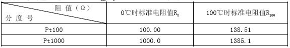 按IEC751國際標(biāo)準(zhǔn),溫度系數(shù)TCR=0.003851,Pt100(R0=100Ω)、Pt1000(R0=1000Ω)為統(tǒng)一設(shè)計(jì)型鉑電阻。TCR=(R100-R0)/(R0×100),其中