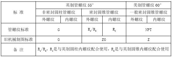 舊機(jī)械制圖標(biāo)準(zhǔn)與現(xiàn)行管螺紋代號(hào)的對(duì)應(yīng)關(guān)系