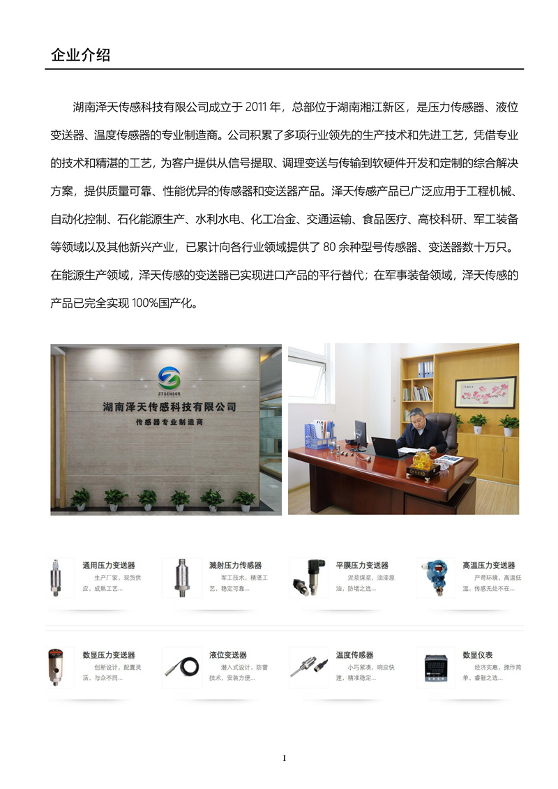 湖南澤天傳感--產品宣傳手冊202401版